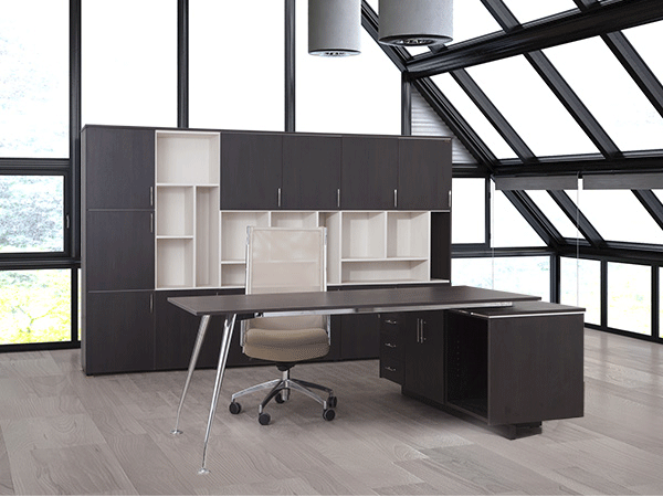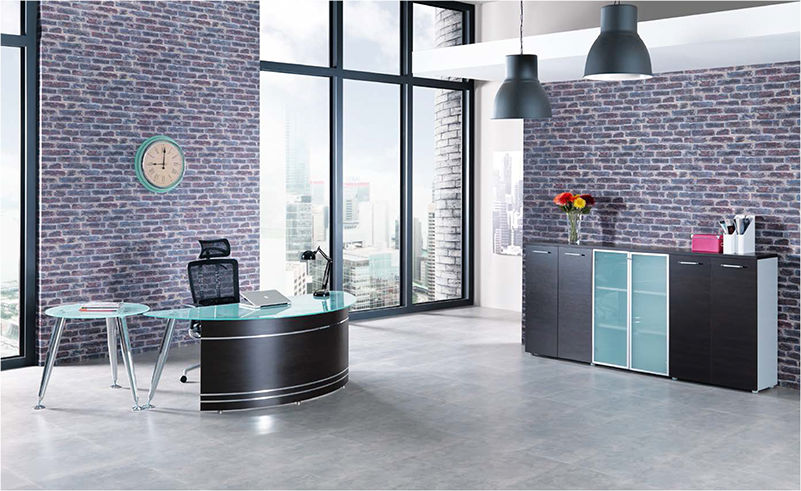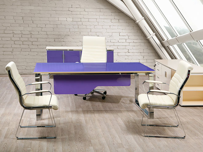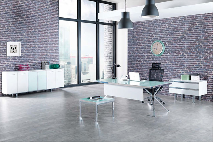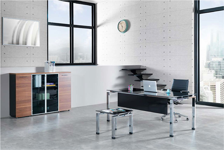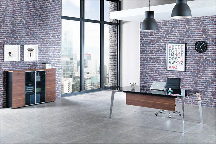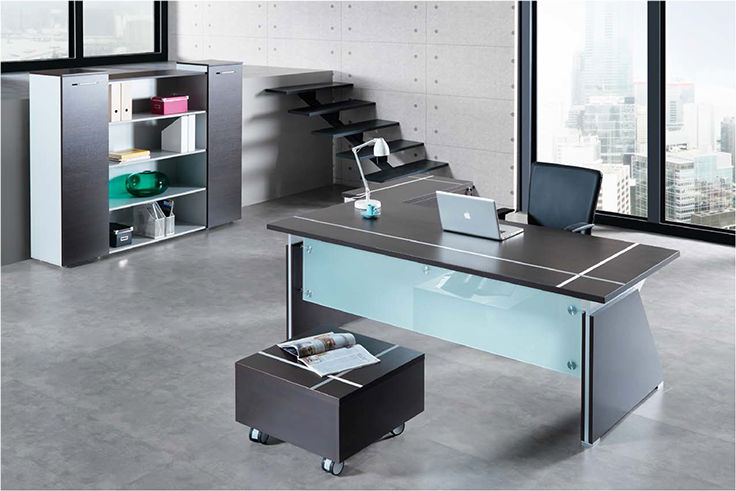 Πάνω από 50 σειρές γραφείων, με συνδυασμούς ξύλου - μετάλλου, κρυστάλλου αμμοβολής σε μια παλέτα πολλών χρωμάτων και συνδυασμών.